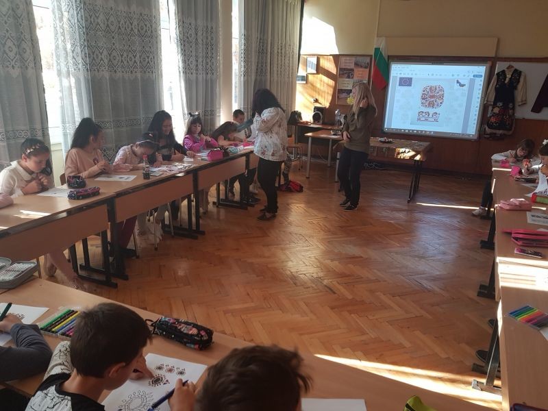 Очаровани и вдъхновени от красотата на българските шевици, четвъртокласниците превърнаха залата в творческа работилница. Те се запознаха с любопитни факти за българските народни носии и шевици и за българския фолклор. Имаха възможност да оцветяват или да довършват моделите, като измислят свои елементи и оцветяват по свой избор. Българската шевица е изключително разнообразна по отношение на елементи и тя отразява душевността, красотата и изяществото на българката.