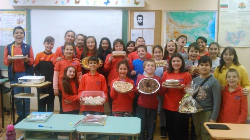 Децата се включиха в кулинарна изложба с традиционната за празника питка, домашни десерти и множество лакомства, приготвени по този повод.