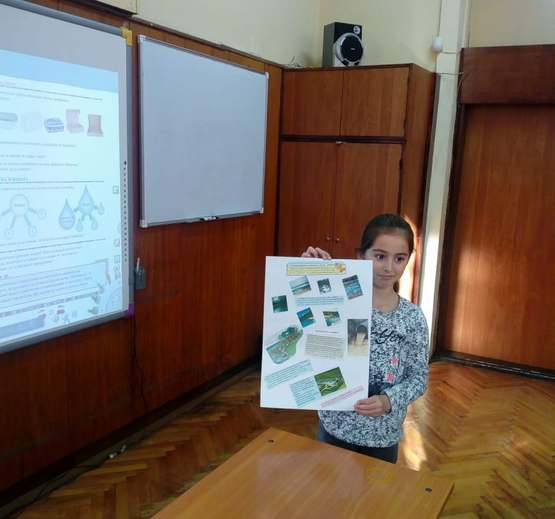 Ралица Колева и Ангела Ангелова запознаха своите съученици с любопитни факти за значението и използването на водата, представяйки своите проекти, а Сандра Кондева прочете своето есе на тема "Водата е живот".