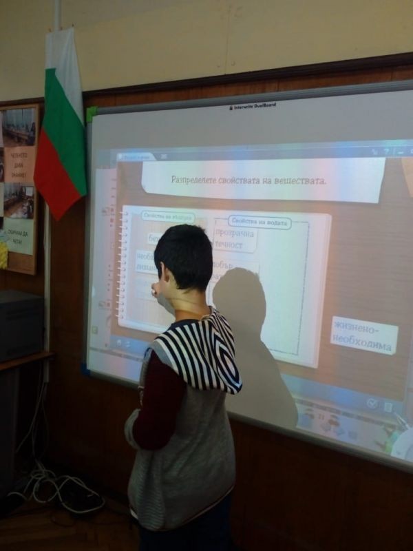 В час по Човекът и природата третокласниците показаха своите знания за въздуха и водата, работейки на интерактивната дъска. Те отправиха своето послание към всички, че животът е невъзможен без тези природни ресурси. Дадоха съвети за разумно използване и пестене на водата и за опазване чистотата на въздуха.