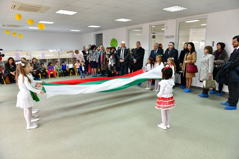 Лентата прерязаха заместник-министрите Деница Сачева, Зорница Русинова, кметът Стефан Радев, Нейно Превъзходителство Мюриел Берсе Коен и директорът на детската градина Катя Вълева.