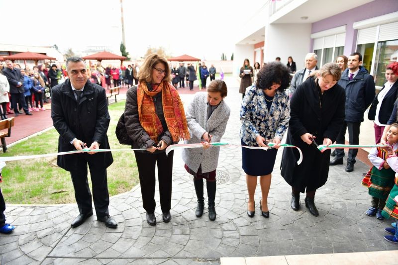 Лентата прерязаха заместник-министрите Деница Сачева, Зорница Русинова, кметът Стефан Радев, Нейно Превъзходителство Мюриел Берсе Коен и директорът на детската градина Катя Вълева.