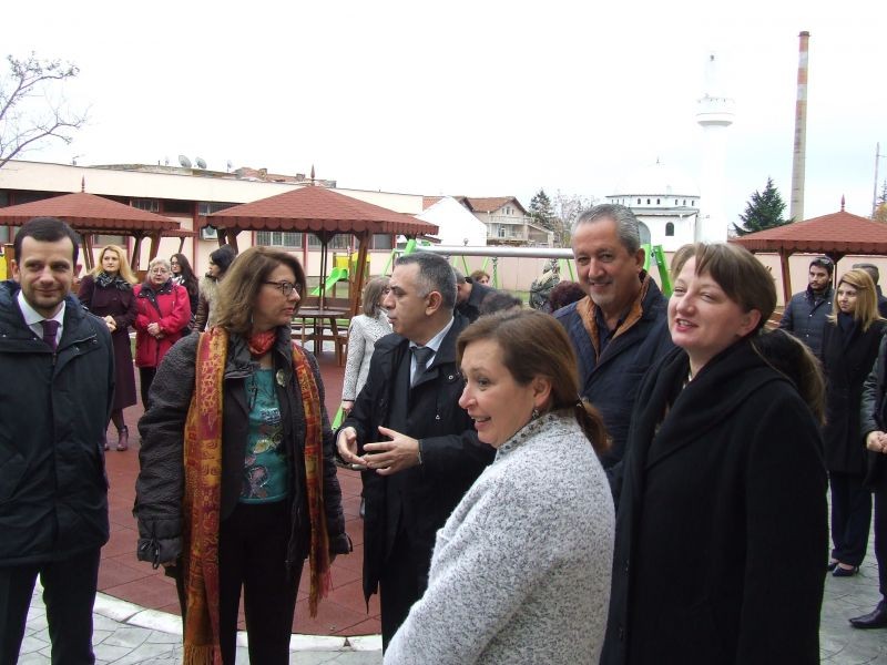 Посланикът на Швейцария г-жа Коен приветства жителите на града и квартала с новата придобивка Прерязването на лентата. Снимка: пресцентър на община СливенДетската градина и част от мултифункционален комплексВ градината има отлични условия за обучение и забавление на децатаВъзпитаниците  на новата забавачница