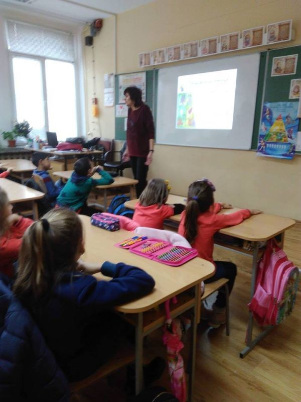 Беседа на тема „Здравословно и вкусно“ се състоя на 23 ноември в ОУ "Елисавета Багряна". Тя беше проведена от Таня Петрова от РЗИ – Сливен пред ученици от ЦДО от 3. "б" и 3"г" клас. Експертът разясни кои са полезните и кои са вредните храни и напитки и как те влияят върху организма. Децата се забавляваха със забавни игри. По интересен и забавен начин, г-жа Таня Петрова провокира вниманието им с реденето на пъзел с полезните и вредните храни. Учениците проявиха интерес към темата, като зададоха въпросите, които ги вълнуваха и споделиха своите знания, свързани със здравословното хранене.