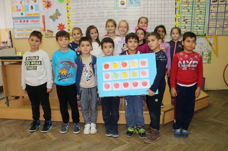 Учениците от първи и втори клас участваха в занимателна игра за подобряване на хранителните навици чрез повишаване консумацията на плодове и зеленчуци, организирана от "Дойчев - МТВ" ЕООД.