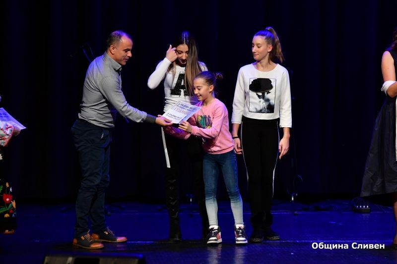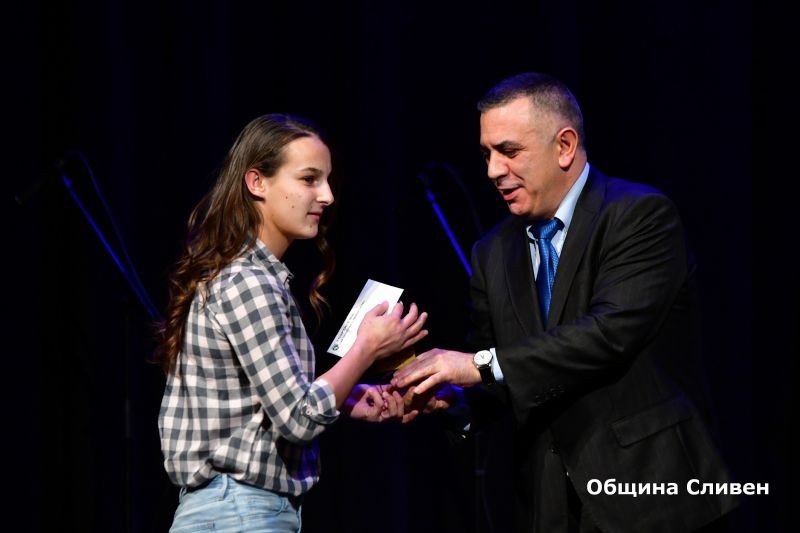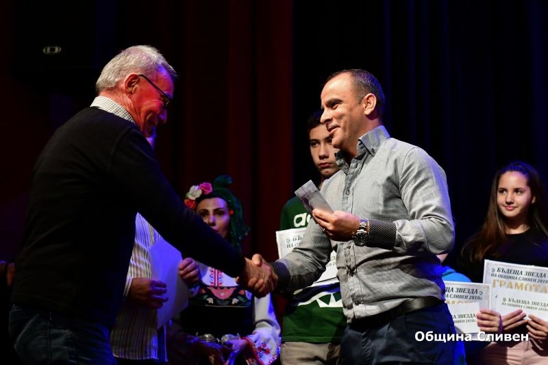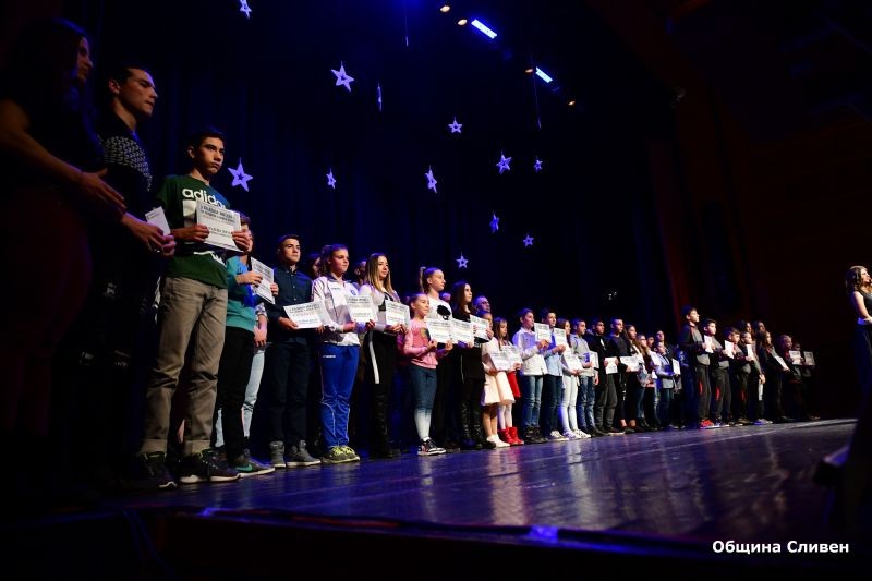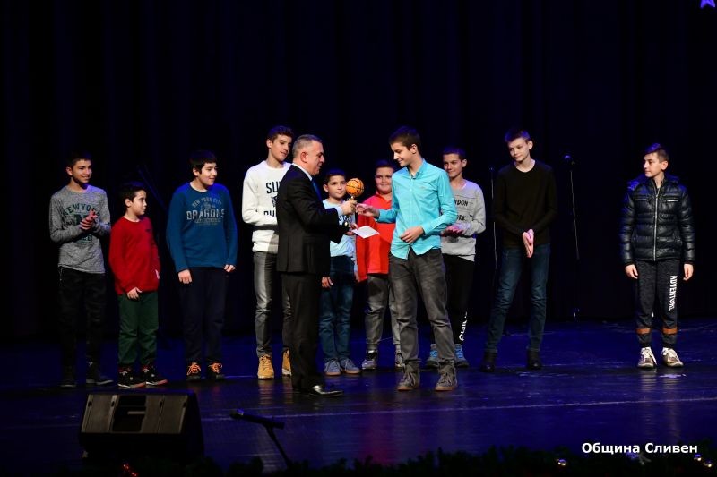 Сцената на зала ,,Сливен” се изпълни с най-добрите млади спортисти до 15 години, които бяха определени за бъдещите звезди на град Сливен. Те получиха награди и почетни грамоти от Комисията за децата, младежта и спорта към Общински съвет – Сливен. Отличията им бяха връчени от председателя на Комисията известния сливенски футболист Пламен Крумов. Това са: женската тройка по акробатика Маринела Иванова, Гергана Калчева и Петя Георгиева, с треньор Виолета Бинева, Габриела Демирева – вдигане на тежести, с треньор Станимир Колев, състезателите по скокове на батут, мини батут и акробатична пътека Магдалена Кисьова, с треньор Боряна Димитрова, Марияна Узунова, Калоян Павлов и Калоян Айранов, с треньор Ваня Бабкина, Дияна Димова, с треньор Красимир Гюзелев, Дима Пенева – ориентиране, с треньор Кристина Василева, Павел Димитров Александър Юлиев – бокс, които се подготвят при Димитър Пехливанов и Щилян Кабранов, Теодор Тодоров, Александра Балинова и Антония Стефанова, с треньор Стоян Димитров, Ивелин Димитров, Таньо Танев, Мустафа Мустафа, Емине Осман и Софи Тенева – борба, с треньор Станка Златева, Осман Боянов и Жулиен Иванов, с треньор Красимир Добрев, Деница Кабаджова, Стилиян Кичуков, Йоана Димитрова, Симона Стоянова, Донован Халков, Самуил Димитров, Никалас Георгиев, Станимир Миланов, Кристел Димитрова - Карате - До Шотокан, с треньор Антон Въндев, Радомир Радев – футбол, с треньор Стефан Стайков, Дияна Кашмерова – баскетбол, с треньор Ивайло Христов, Виктор Николов – баскетбол, с треньор Ангел Стефанов, Павлин Иванов – баскетбол, с треньор Събин Маринов и Виолина Митрофанова – тенис, с треньор Христоско Атанасов.