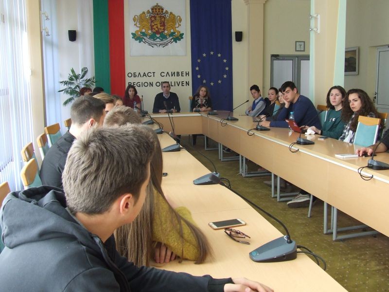Представители на Младежкия общински съвет и на гимназиите в Сливен посетиха областната администрация. Целта на визитата им бе да се запознаят с правомощията и задълженията на Областния управител и поверената му структура. Те бяха приети от зам.областния управител Камен Костов. Освен че поставиха въпроси, свързани с темата, децата изразиха позицията си относно преминаването на едносменен режим на обучение, необходимостта от спортна база за ППМГ и ПГЗЕ в областния град и по други теми.