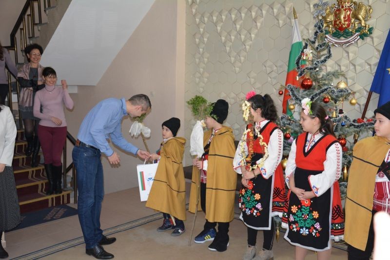 КОЛЕДАРИ ОТ ОУ "ПАНАЙОТ ХИТОВ" ПОСЕТИХА ОБЛАСТНАТА АДМИНИСТРАЦИЯ