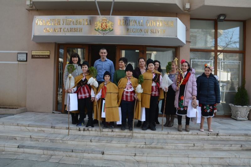 Петокласници от Основно училище „Панайот Хитов“ в Сливен гостуваха на областната администрация. Малките ученици представиха традиционни коледни обичаи, песни и наричания. Сурвакаха за здраве зам.областните управители Камен Костов и Димитринка Петкова, секретаря Кирил Аврамов и служителите в администрацията. Пожелаха през Новата година „по Йордановден да има люта, снеговита зима, по Гергьовден из нивята дъжд да напои житата, по Петровден благо слънце да погали всяко зрънце, а Кръстовден да ни свари с препълнени хамбари“. Станеник на коледарите бе директорката на училището Петя Танева.