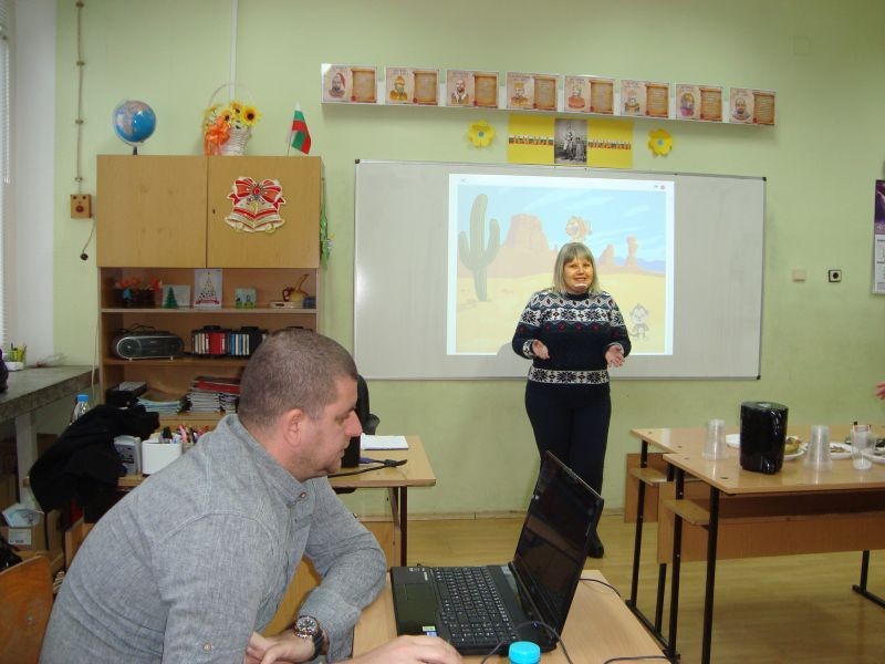 Дискусия на тема "Основи на компютърното моделиране" се състоя на10 януари в ОУ "Елисавета Багряна" , гр. Сливен. В нея взеха участие класните ръководители на втори и трети клас. Г-жа Елена Сярова представи пред колегите урок за запознаване с интерфейса на визуалната среда за програмиране Scratch. Зареждане и запознаване с визуалната среда за програмиране – работно поле, зона за герои и сцена, библиотека с герои и декори, зона за управление на проекта, екран за преглед. Бяха изпълнени проектите: „Мисия Пустиня”, „Скрий рибката”, „Гласът на животните” и др. Гост на мероприятието беше г-жа Марияна Иванова, заместник-директор.