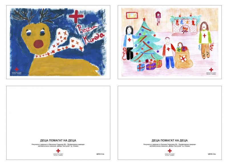 В двете си последователни кампании БЧК – Сливен набра средствата от продажбата на специално нарисуваните картички за акцията от шестокласничките в ПМГ „Добри Чинтулов“ Веселина Гидикова и Евгения Георгиева - участнички в инициативата „Деца помагат на деца“.