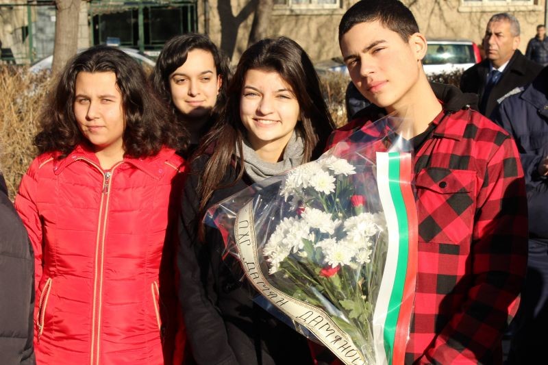 Представители на клуб „Памет” към Профилираната хуманитарна гимназия „Дамян Дамянов” участваха в четвъртък в общоградското поклонение пред паметника на братята освободители на площад „17 януари". Тук, в този ден през 1878 г. гражданите на Сливен са посрещнали руските военни части с хляб и сол. Болен и с отслабнало зрение, поетът Добри Чинтулов произнася пламенна благодарствена реч. Част от словото му днес можем да прочетем на каменната плоча на паметника. Сред поднесените цветя на признателност за героите, отдали живота си за свободата на града, бе и скромният букет от името на училищната ни общност.