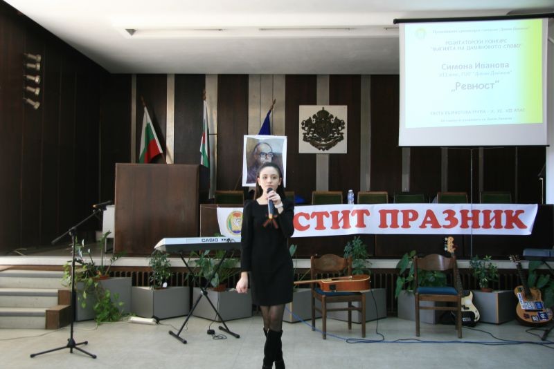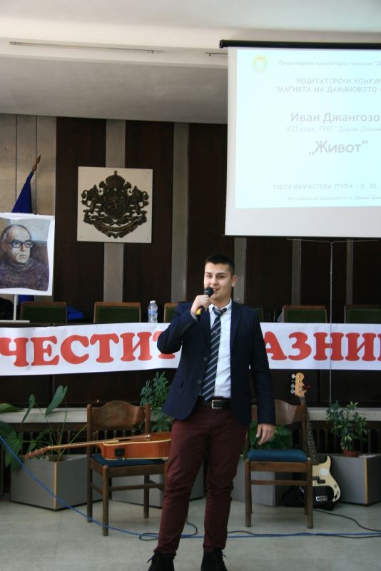 Директорът на гимназията Жельо Радев награди победителите в конкурсите за рецитаторско майсторство и за лично творчество – поезия, проза, компютърна графика и видеоклипове, вдъхновени от стиховете на Дамян Дамянов.