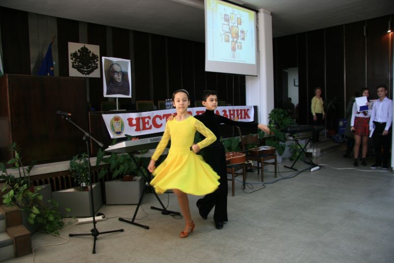 В програмата участваха музикантите от училищната вокално-инструменталната група „Монолог“ с ръководител Виолина Петкова, танцовата двойка Мария Асимаки и Денис Сираков от клуба по спортни танци „Сливен“ с ръководител Цанка Иванова и др.