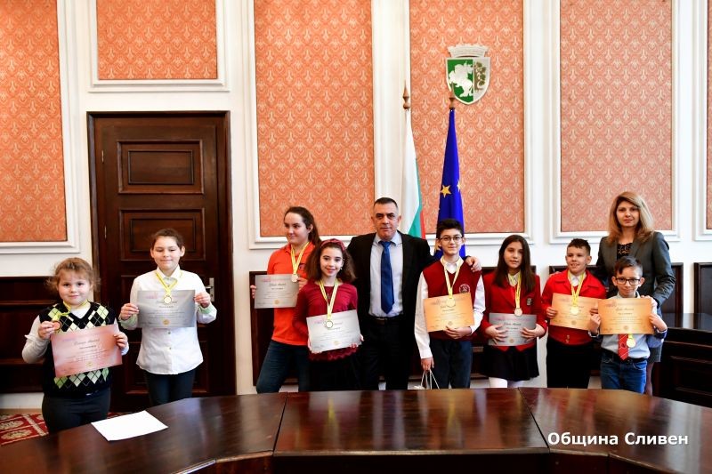 8 деца от Сливен са представили достойно себе си и своето училище със завоювани медали от провелата се в края на ноември в град Стара Загора квалификация за TIMO 2019. С бронзов медал е била отличена Ния Парушева, а сребърни медала са получили Христиана Халачева, Марияна Софиева, Преслава Добрева и Християна Василева. Със златни медали са били отличени Петър Халачев, Раян Камаринчев и Денис Сираков. Те получиха своите грамоти и медали от кмета Радев, който им подари календар на Общината и цветен албум с едни от най-емблематичните места на Сливенския край.