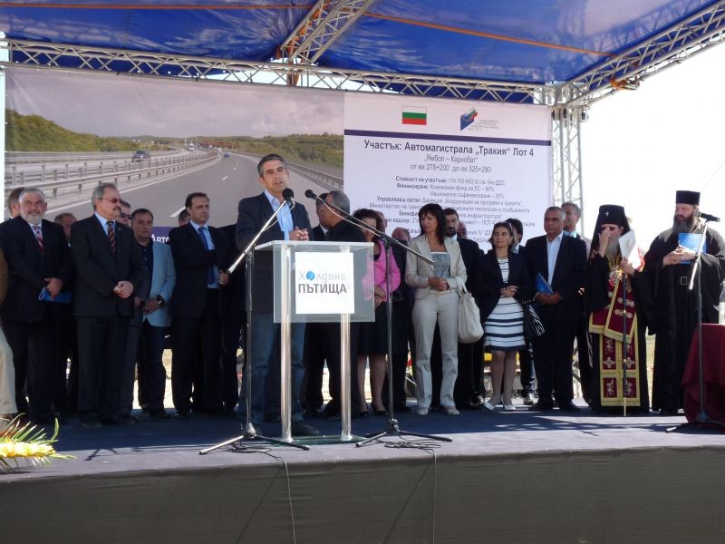 В своето слово при откриване на ритуала премиерът Бойко Борисов заяви, че „Целта на правителството е чрез строежа на магистрали да се намалят жертвите по пътищата и да се съживи българската икономика. Кому е нужно пристанище Бургас ако до него няма добър път”. Той бе категоричен, че обещанието за пускане на магистралата в експлоатация през 2012 г. ще бъде спазено.Бяха връчени на изпълнителите строителното разрешително и лично ги помоли магистралата да бъде готова през юни 2012 г., а не през септември, както е по договор. Бързо, качествено и в срок е изискването на премиера към деветте български строителни компании и гръцката фирма, които участват в изграждането на магистралата. Борисов подчерта, че контролът върху качеството на строежа ще бъде засилен, а строителният надзор ежедневно ще упражнява правата си. „България ще има седем магистрали”, заяви премиерът и допълни, че три от тях ще бъдат изградени още по време на първия мандат на ГЕРБ, а останалите четири през втория. През 2014 г. ще започнат дейностите по проектите „Черно море” и „Струма”, категоричен бе премиерът.