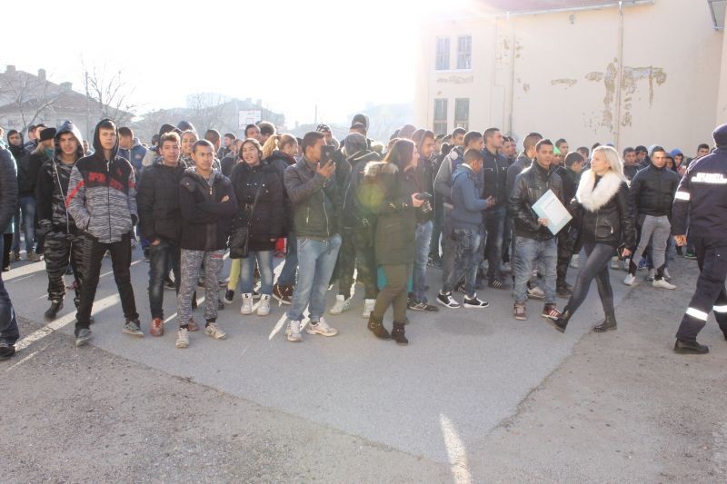 Съгласно заданието пожарът е възникнал в кабинета по история на първи етаж. Директорът подава сигнал на тел. 112. Евакуацията на ученици и учители започва в 9.30 ч., като е докладвано на директора, че няма останали в сградата и пострадали ученици. Двама учители обаче са блокирани на първия и втория етаж и са тежко „обгазени“. Пристигналите пожарникари спасяват пострадалите, като „обгазеният“ от втория етаж е свален с пожарен кран.