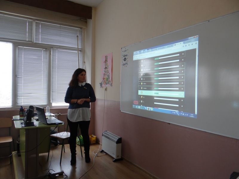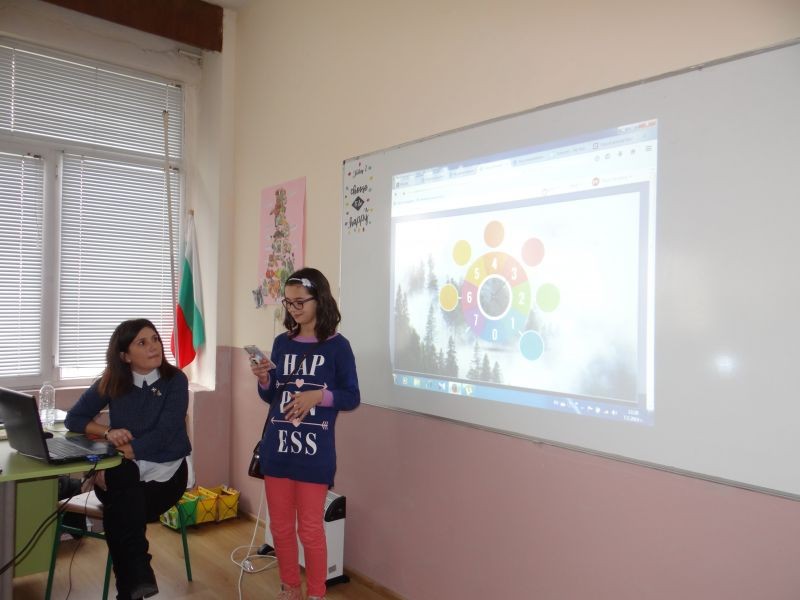 Целта на урока беше да се покаже нагледно как се обучават децата в тъй наречената "Класна стая без хартия", която е част от проекто - базираното обучение на учениците от 5 клас, въведено от тази година в училището. За целта химикали и тетрадки не бяха нужни, а само най- изкушаващото за децата- таблети и телефони. Чрез забавни интерактивни презентации, игри и викторини, изцяло създадени в онлайн платформите Kahoot!, Quizzez, Prezzi, г-жа Стоева показа, как иновацията и модернизирането на учебната среда може да мотивира учениците за по-лесно и достъпно усвояване на учебния материал, но може и да позволи деца със СОП активно да се включват в обучителния процес, да участват наравно със съучениците си и дори да им бъде интересно.