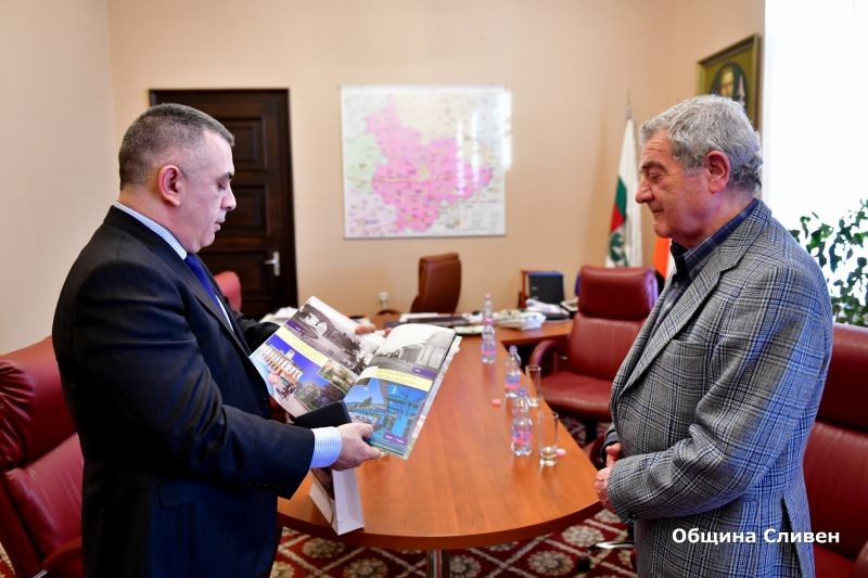Стефан Радев подари на своя гост възпоменателна монета „Старият бряст в Сливен“ и цветен албум с облика на града преди и сега.