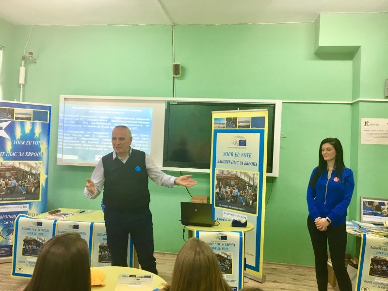 На 19 Февруари 2019 екипът по проект „Вашият глас за Европа“ посети ПГПЗЕ „Захарий Стоянов“ в рамките на информационната кампания „Ще гласувам за първи път“.