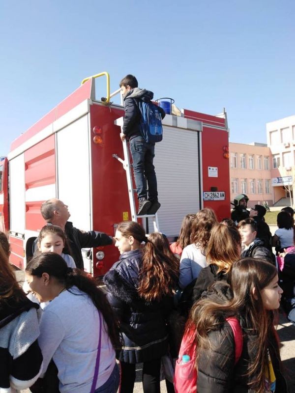 Петокласниците разгледаха оборудването на пожарната кола и се убедиха, че работата на униформените е много отговорна и не е никак лесна. Те имаха възможност да разгледат отвътре автомобила и да си направят снимки за спомен.