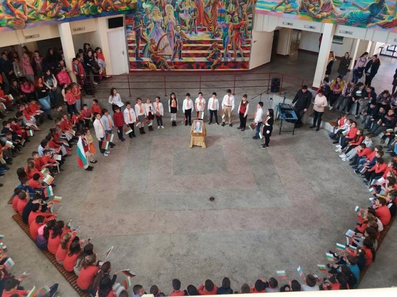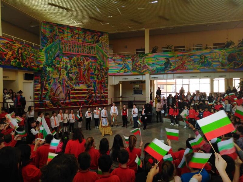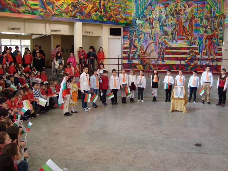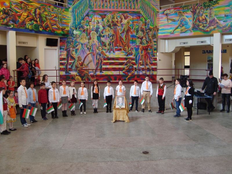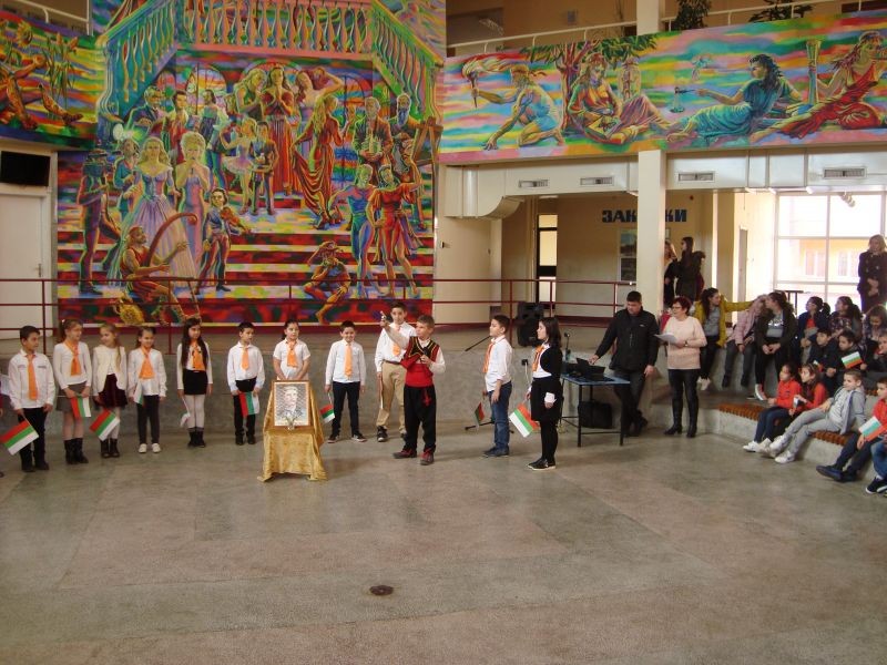 Тържеството за Левски обедини учениците, които заедно рецитираха "Обесването на Васил Левски" и развяваха българското знаме в знак на уважение към делото на националния герой. Трогателно беше и изпълнението "Песен на Апостола", което изправи на крака всички.