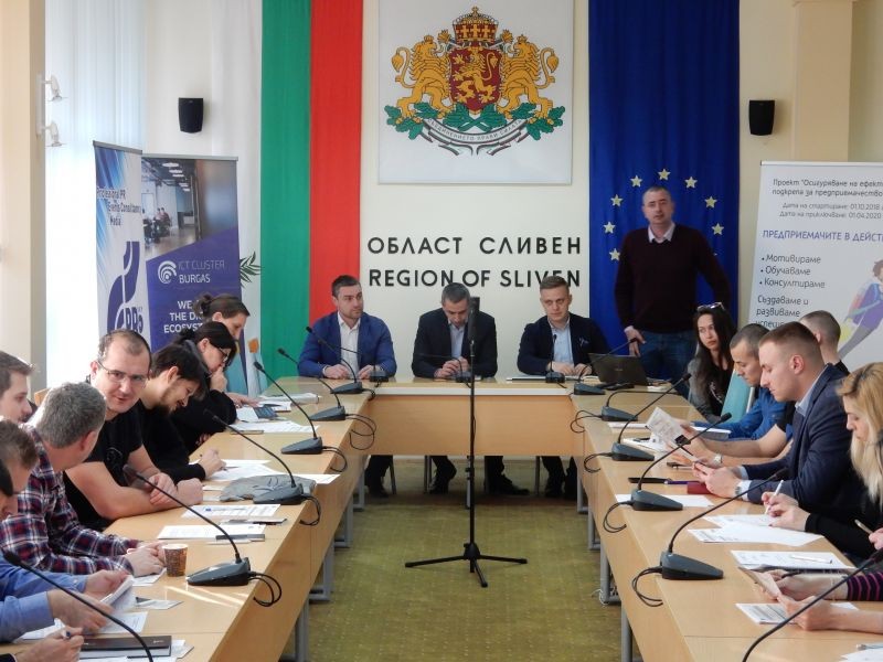 Възможностите за безплатни обучения и менторска подкрепа на бъдещи предприемачи предизвикаха интерес сред младите жители на Сливен. Близо 30 души, на възраст между 25 и 35 години, участваха в информационна среща в областната администрация, на която бе представен проектът „Осигуряване на ефективна подкрепа за предприемачество“. Зам.областният управител Камен Костов откри събитието и представи изпълнителите на проекта – „Информационни и комуникационни технологии – клъстер Бургас“ с председател Петко Георгиев и Комуникационна агенция „ProWay“ с управител Стоян Стоянов. Гост бе зам.областният управител на област Ямбол Волен Дичев.