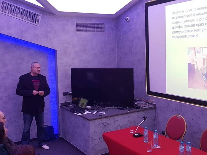 На 27.02.2019 г. в хотел „Национал“, зала „Графити“ бе проведен информационен семинар с наше участие на тема“ Приобщаващото обучение на деца и ученици със зрителни затруднения в област Сливен“. Присъстваха: заместник - областният управител г-жа Димитрина Петкова, проф. Владимир Радулов, д-р Емануела Стоилова – главен експерт в Дирекция „Приобщаващо образование в МОН“, г-жа Илонка Толева – старши експерт по приобщаващо образование – гр. Сливен, директорът на РЦПППО – гр. Сливен г-жа Юлия Стефанова, други директори на училища, ресурсни учители, родители на ученици със зрителни затруднения и други гости. Изнесени бяха редица презентации и бе споделен богат опит в работата с ученици със зрителни затруднения. Нашият колега Илко Илиев участва във форума и запозна присъстващите с традиции, подходи и методи на работа със слабовиждащи ученици в училището ни.
