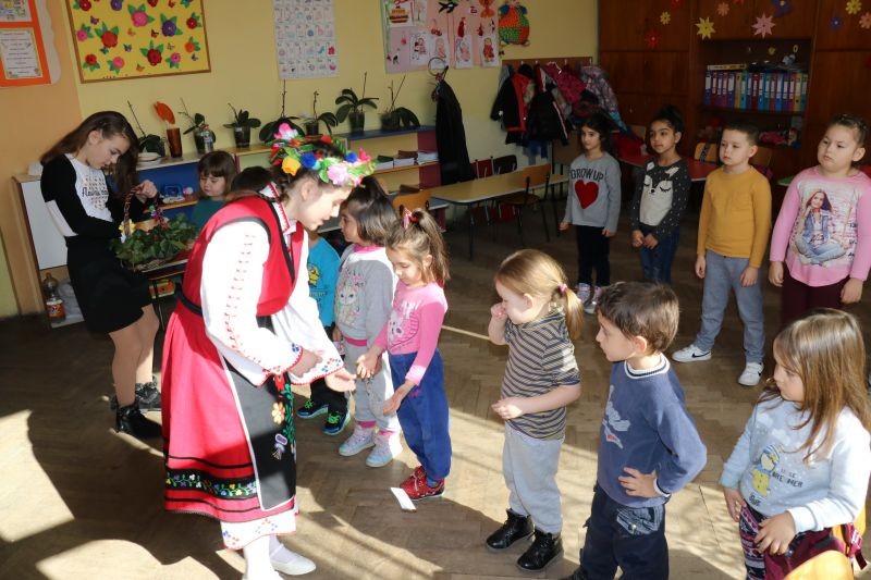 Днес ученици от СУ "Йордан Йовков" - Сливен бяха на гости при децата от ДГ "Папазян". Те запознаха присъстващите с традициите и обичаите свързани с мартеничките, а домакините ги поздравиха със стихотворения и песни за Баба Марта.