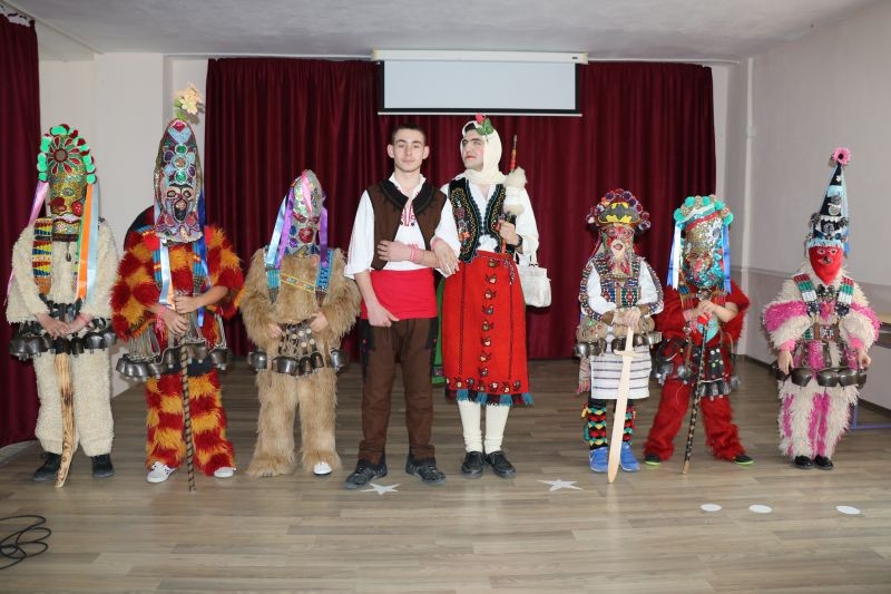 Всички съпреживяха днес фрагмент от кукерските игри на сливенския край. Запознаха се с легендата за първите маскарадни игри и научиха символите на кукерските персонажи.