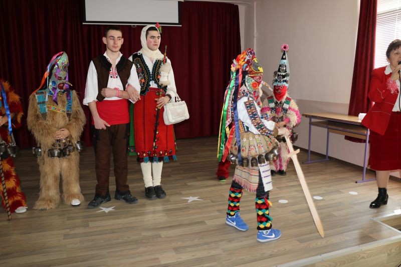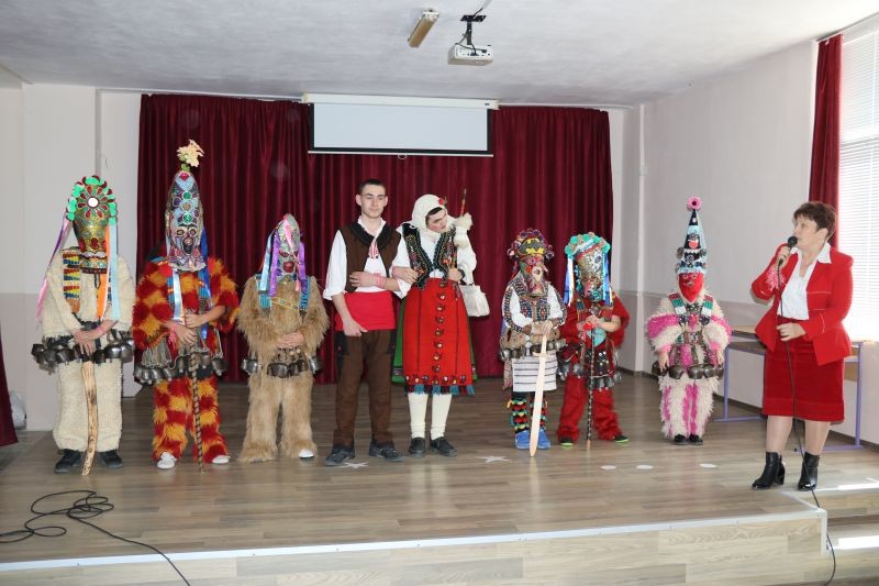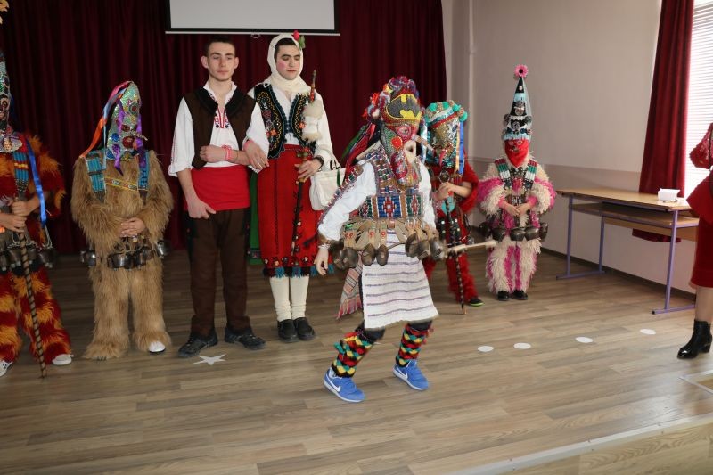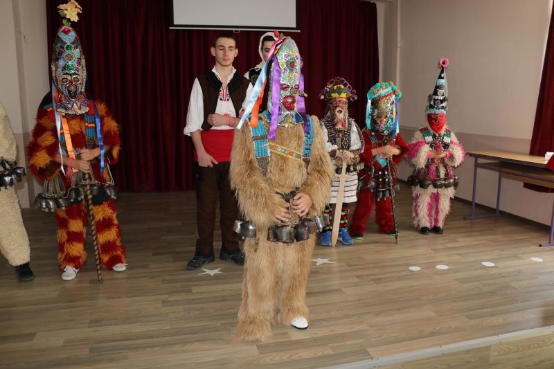 В навечерието на цикъла "Пролетни празници" от българския обреден календар кукерски звънци огласиха днес училището ни.