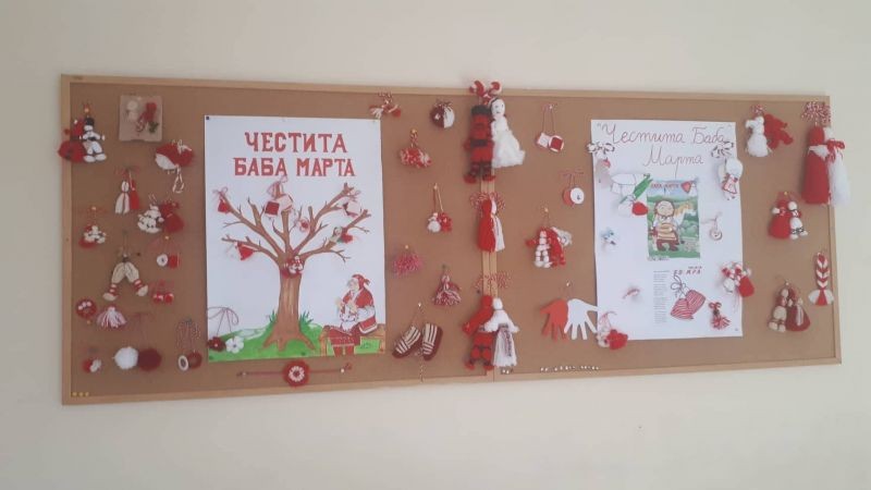 Табла с мартенички има и в корпуса на начален етап. Те носят послание за здраве и придават добро настроение и на ученици, и на учители.