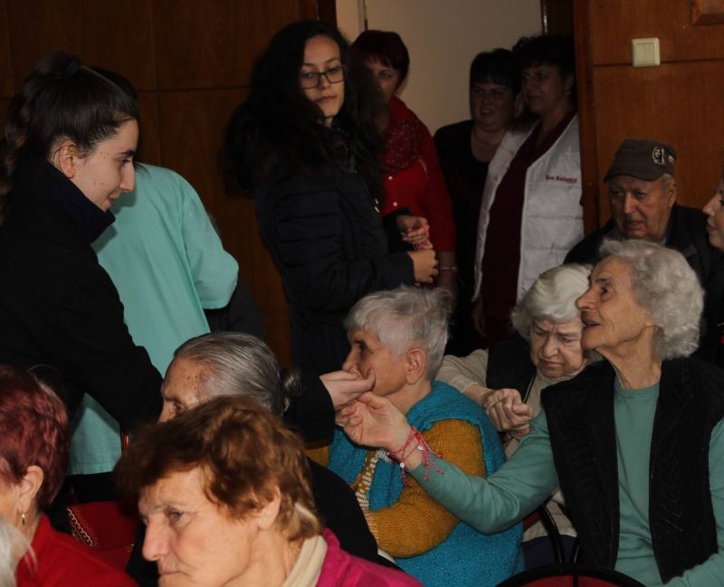 Участници в клуба за извънкласни дейности“Каузи“ към Профилираната хуманитарна гимназия „Дамян Дамянов“ и клуба „Добротворство“ към Младежкия дом, в петък бяха в Дома за стари хора. Десетокласничката Мария приветства събралите се хора с бели коси и и отправи към тях традиционните за всеки Първи март пожелания за бодър дух, здраве и оптимизъм. Сияна и Кремена изпълниха свои стихотворения, посветени на любовта и пролетта, като символ на прераждането. Антоан и Таня изпълниха любими песни от репертоара на училищната вокално-инструментална група „Монолог“. В раздаването на мартениците се включи и Николина. Директорката на дома Нина Накова изказа благодарността на малката общност, обитаваща чудесната сграда в подножието на Сините камъни и върна жеста на доброволците под формата на големи и красиви Пижо и Пенда. Тя поведе празнично хоро, в което се включиха и млади, и стари.