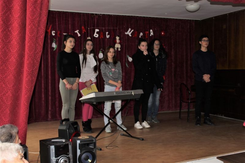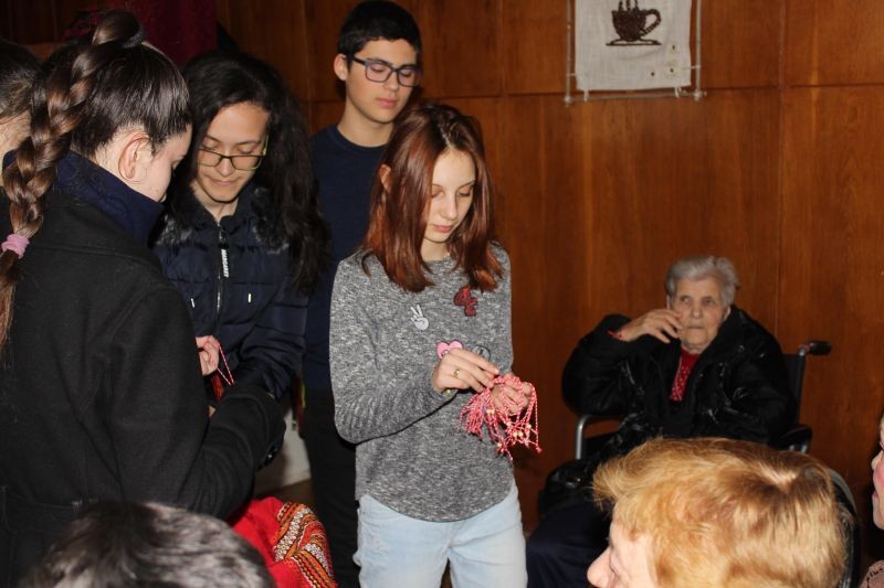 Участници в клуба за извънкласни дейности“Каузи“ към Профилираната хуманитарна гимназия „Дамян Дамянов“ и клуба „Добротворство“ към Младежкия дом, в петък бяха в Дома за стари хора. Десетокласничката Мария приветства събралите се хора с бели коси и и отправи към тях традиционните за всеки Първи март пожелания за бодър дух, здраве и оптимизъм. Сияна и Кремена изпълниха свои стихотворения, посветени на любовта и пролетта, като символ на прераждането. Антоан и Таня изпълниха любими песни от репертоара на училищната вокално-инструментална група „Монолог“. В раздаването на мартениците се включи и Николина. Директорката на дома Нина Накова изказа благодарността на малката общност, обитаваща чудесната сграда в подножието на Сините камъни и върна жеста на доброволците под формата на големи и красиви Пижо и Пенда. Тя поведе празнично хоро, в което се включиха и млади, и стари.