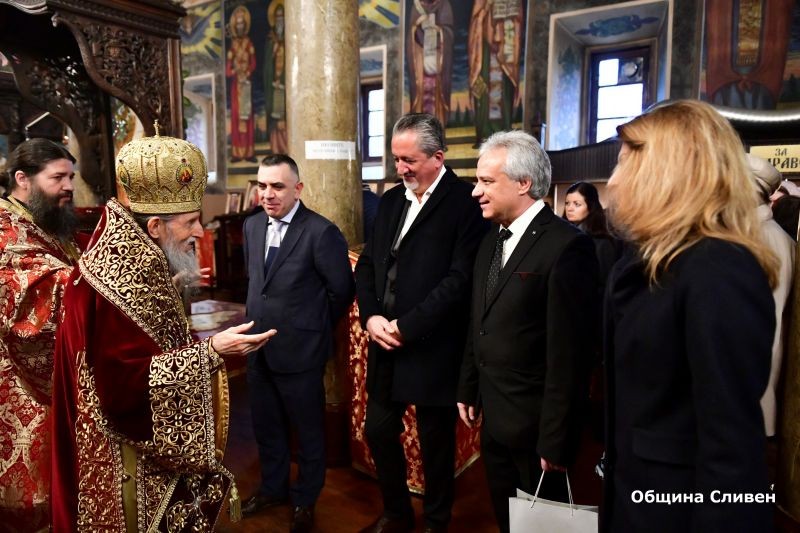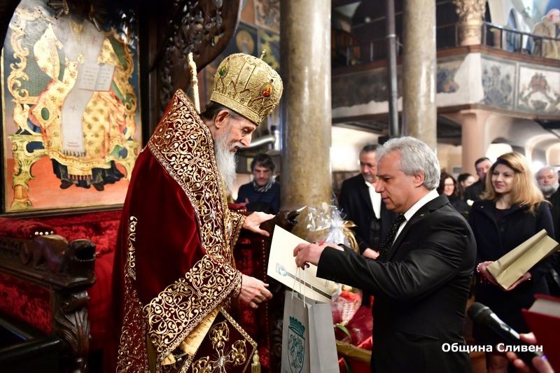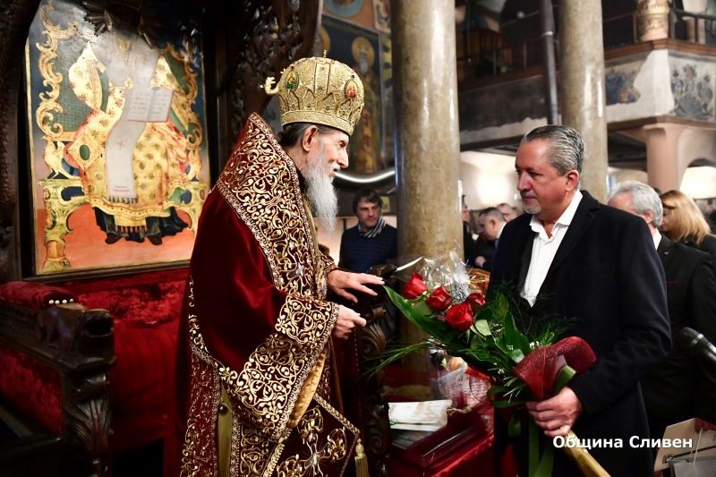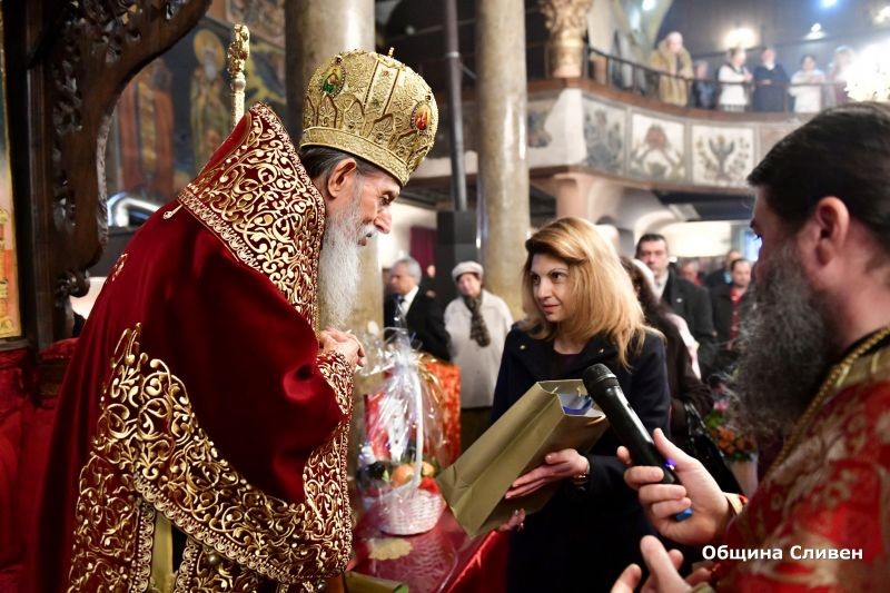 На литургията днес, която беше отслужена от Негово Високопреосвещенство в катедралния храм „Св. Димитър“ подаръци и най-добри пожелания поднесоха също областният управител Чавдар Божурски, кметът на община Сливен Стефан Радев, зам.областният управител Димитринка Петкова и зам. кметът Пепа Чиликова.