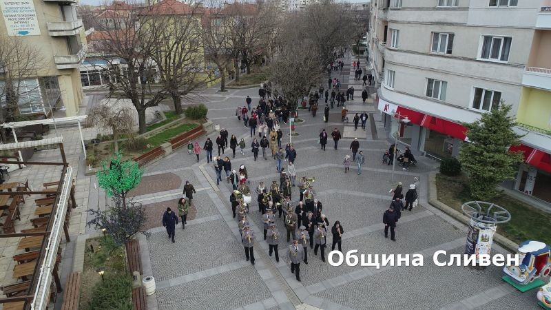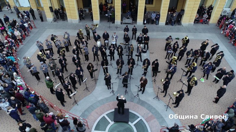 По същото време от Розова градина по бул. „Цар Освободител“ премина празничен парад на Военен духов оркестър - Сливен и приятели. Той продължи на пл. „Цар Освободител” с празничен концерт на Сборен духов оркестър. Заедно свириха 100 изпълнители от Военен духов оркестър при Център за подготовка на специалисти – Сливен с диригент кап. Калин Гемеджиев, Софийски духов оркестър с диригент Васил Делиев и Духов оркестър при Община Поморие с диригент Ангел Панцирков.