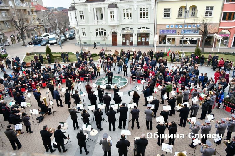 Точно в 12.00 часа Сливен беше огласен от общ камбанен звън на всички православни храмове в града.