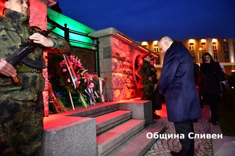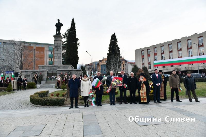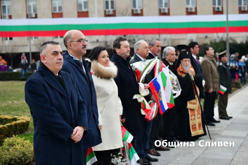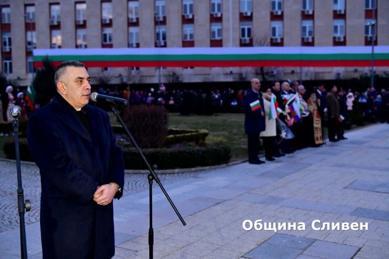 „Скъпи съграждани и гости на град Сливен, днес всеки българин прекланя глава пред хилядите знайни и незнайни войни, дали живота си и пролели кръвта си за правото днес да се наричаме свободни. 3 март е не просто денят, който е подписан Санстефанския мирен договор, 3 март е символ на надеждите и въжделенията на цели поколения българи, ден, в който се съединяват възрожденските идеали, борбата за национално просвещение, борбата за независима православна църква, борбата за национално освобождение и за свободна България. Удивително е как нашите предци успяват от развалините на разпадащата се Османска империя да изградят държавност, а изковат закони и правила, силна армия, национална икономика, висока култура, които неведнъж са учудвали света. За тези 141 години България е постигнала много. Ние, улисани в злободневното ежедневие, често забравяме, че няма друга такава държава в Европа, която толкова дълго време да е била отделена от европейския път на развитие. И въпреки това сега България е член на най-силния военен съюз в света, на най-богатата и свободна икономическа общност. И нека не забравяме завета на нашите предци, че свободата е не само териториално измерение, но също толкова важна е и свободата на личността и свободата на духа. Честит празник на всички българи!“, заяви кметът в своето слово.