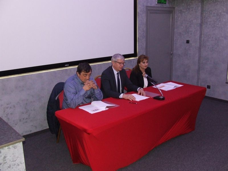 Председателят на АС-Сливен Слав Бакалов откри общото събрание. На снимката от двете му страни: съдиите Колев и Дражева от ВАС.Общо събрание