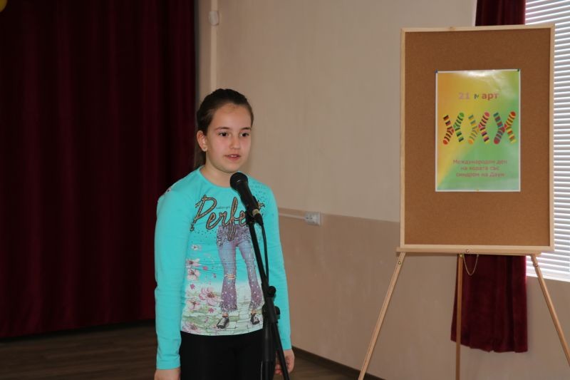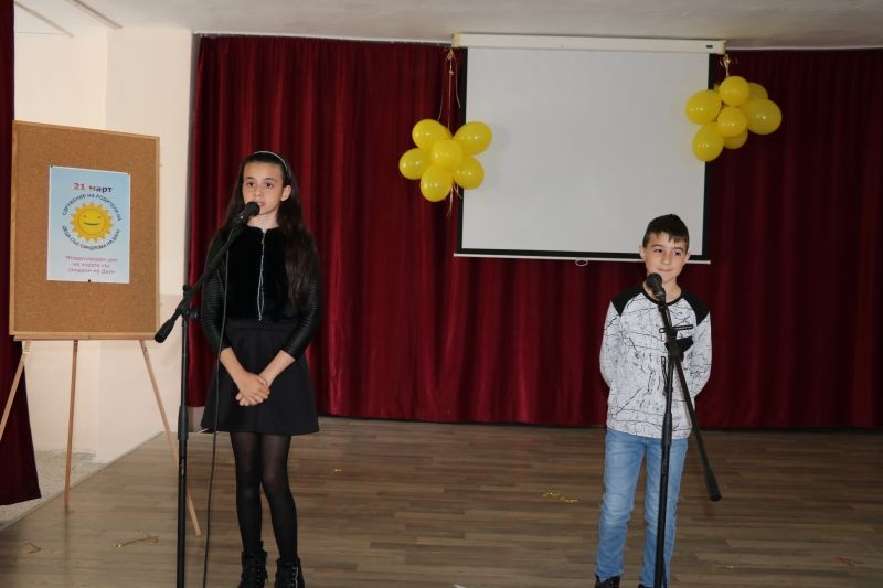 По повод на Международния ден на хората със синдром на Даун – 21 март в СУ „Йордан Йовков” с подкрепата на Местната комисия за борба с противообществените прояви на малолетни и непълнолетни се проведе едни по-специален урок, урок по толерантност и съпричастност, урок за приятелството и уважението между децата. В него се включиха деца и ученици от детски ясли и градини, училища на територията на гр. Сливен и учениците от начален етап на обучение в СУ „Йордан Йовков”.