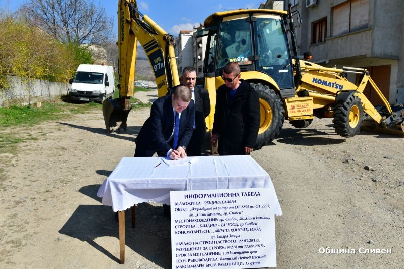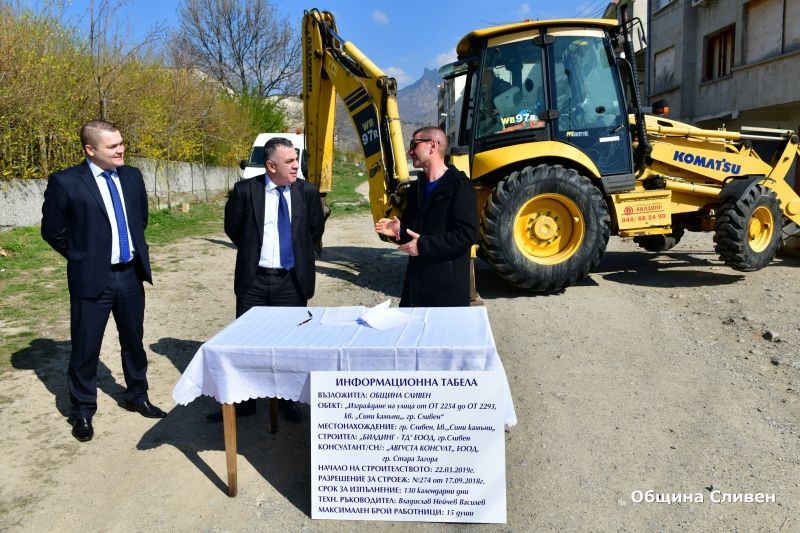 Днес беше даден старт на изграждането на нова улица в квартал „Сини камъни“. На събитието присъстваха кметът на Сливен Стефан Радев и заместник-кметът Румен Иванов. Те пожелаха бързо и безпроблемно реализиране на проекта.