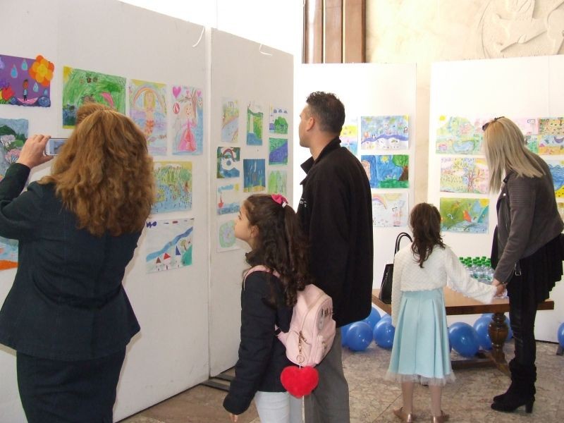 С рисунките, участвали в конкурса, бе подредена изложба във фоайето на зала "Май".