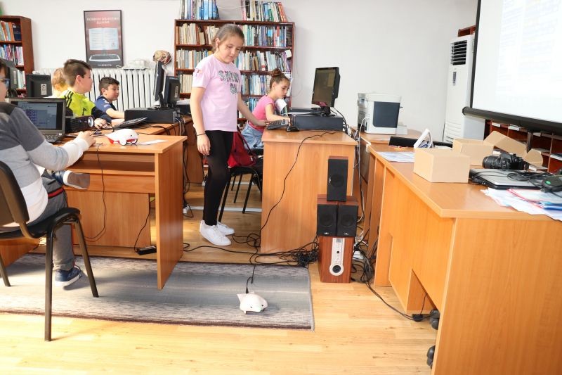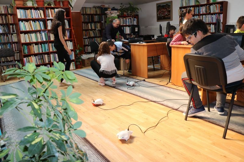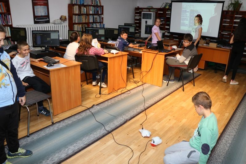 Четвъртокласниците от СУ "Йордан Йовков" - Сливен, участници в заниманията по интереси в клуб "Първи стъпки в програмирането с робота Финч", с ръководител Димитър Василев, посетиха Регионалната библиотека "Сава Доброплодни", където проведоха своето занятие по програмиране.
