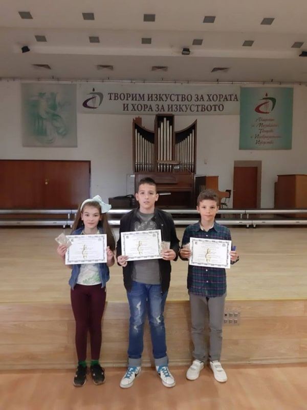 Четвъртокласници от ОУ "Елисавета Багряна" взеха участие в заключителния етап на Националното състезание "Ключът на музиката". Това са Станимир Русев, Добромира Христова и Калоян Хаджистойчев.