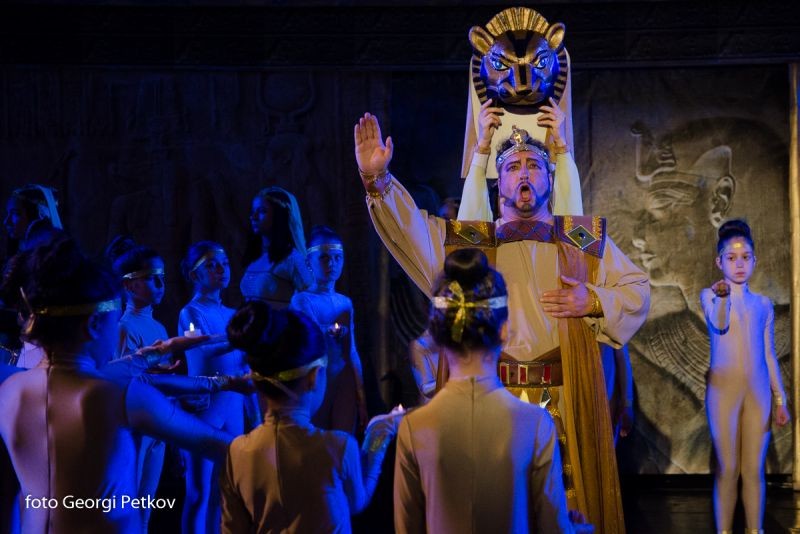 В спектакъла като Радамес се превъплъщава оперният певец, почетен гражданин на Сливен Камен Чанев. В ролята на Амнерис е Даниела Дякова, също от града под Сините камъни. Аида ще изиграе Таня Иванова, Рамфис – Ивайло Джуров, Амонасро – Кирил Манолов, Царят на Египет е Александър Марулев и други. Спектакълът ще дирижира главният диригент на Старозагорската опера Ивайло Кринчев. Режисьор е Огнян Драганов.
