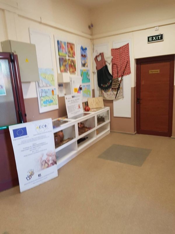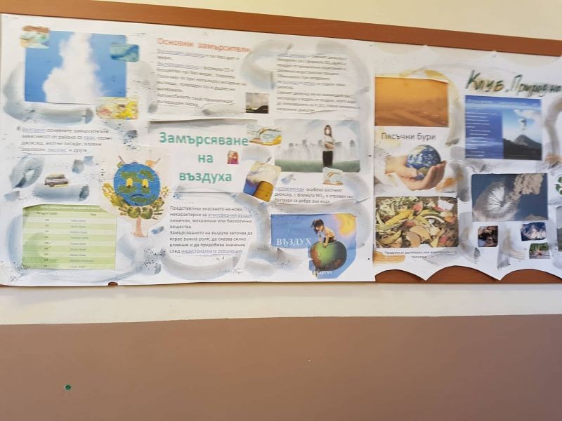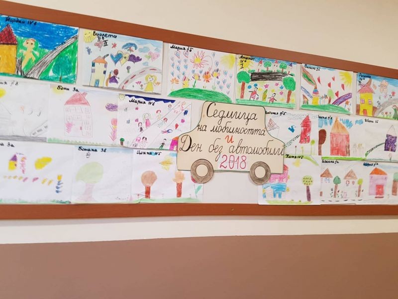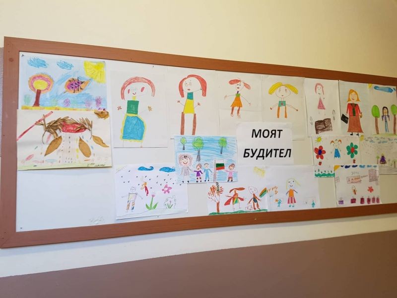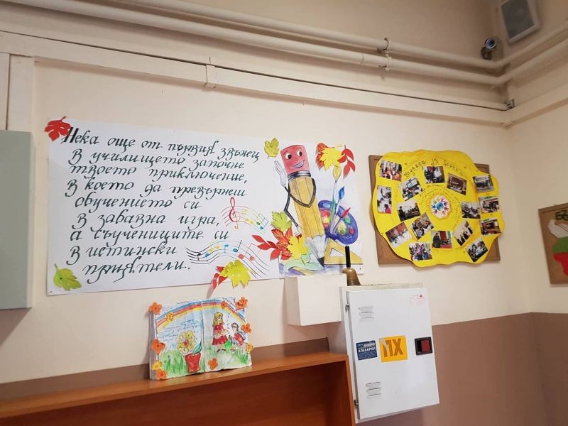 В училището е създадена цветна и красива атмосфера за работа – тематични табла, рисунки, пана, патриотичен кът.