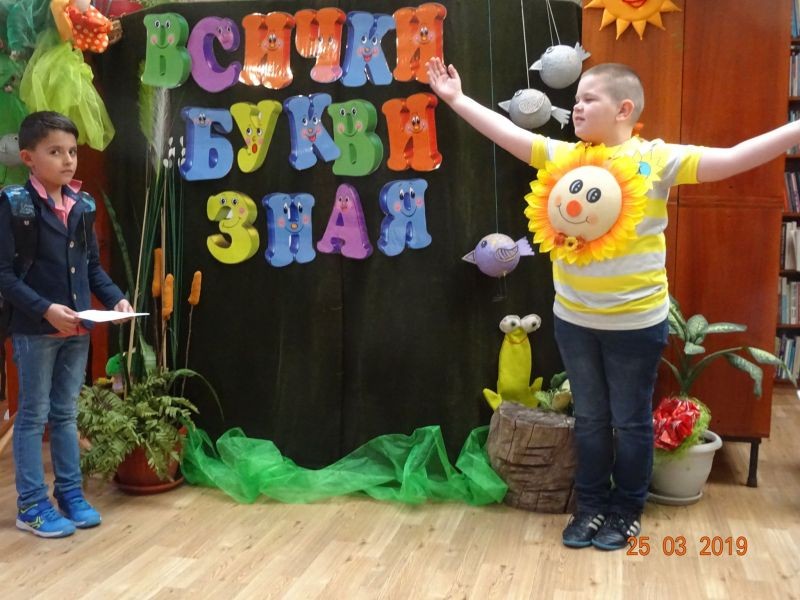 Учениците от I „а”, „б”, „в” и „г” класове и техните учители отбелязаха важен момент от обучението на първокласниците с тържество „Всички букви зная“ . Тържествата се проведоха от 25 до 28 март в Регионална библиотека „Сава Доброплодни”.