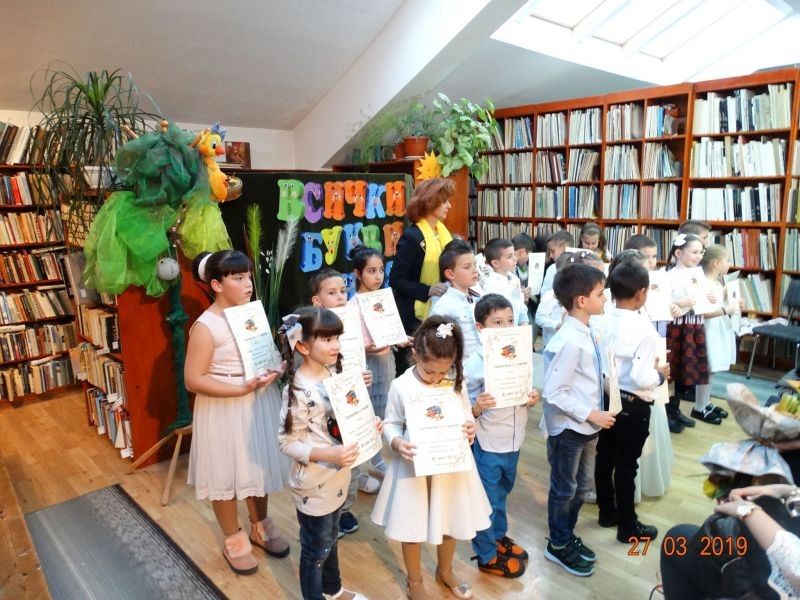 Учениците от I „а”, „б”, „в” и „г” класове и техните учители отбелязаха важен момент от обучението на първокласниците с тържество „Всички букви зная“ . Тържествата се проведоха от 25 до 28 март в Регионална библиотека „Сава Доброплодни”.