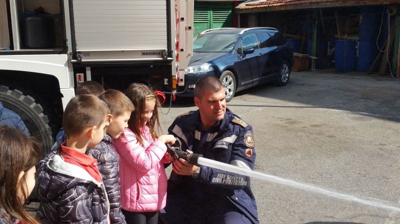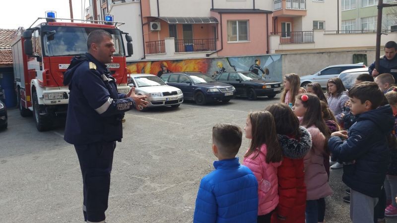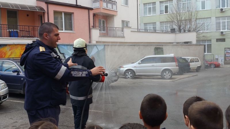 За начало на малките ученици беше изнесена лекция, която премина в беседа, на тема „Как да реагираме правилно при пожар“. Децата показаха завидни знания и смаяха лектора с това, че знаят телефонния номер за спешни случаи, как не трябва да изпадат в паника при кризисна ситуация, как бързо и безопасно да се придвижат извън зоната на бедствието, а за финал му заявиха, че всички ще станат пожарникари, за да спасяват деца и животинчета от огнени стихии.