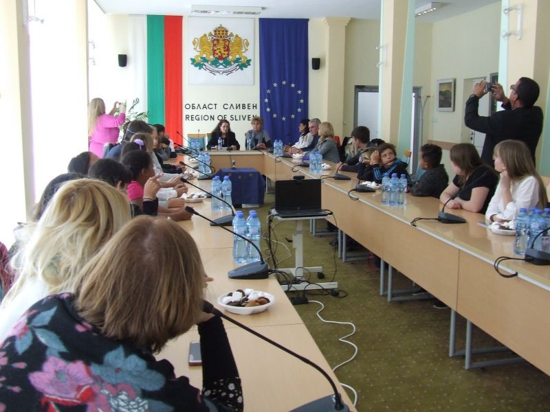 Децата и техните ръководители посетиха областната администрация заедно с директора на ОУ „Братя Миладинови“ Митко Митев и преподаватели от училището. Зам.областният управител Димитринка Петкова се срещна и разговаря с тях, запозна ги с културните и исторически забележителности на Сливен. Петкова ги поздрави от името на областния управител Чавдар Божурски и екипа му и им подари сувенири от Художествената галерия „Димитър Добрович“.